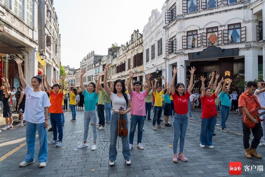 “現場非常熱鬧,感覺百年騎樓老街也‘活’起來了,以前覺得騎樓建筑比較老舊,現在來老街能感受到傳統與現代氣息的交融。”??谑忻駰钕壬f,自己偶爾來騎樓老街,每次都驚喜于這里的變化,希望能發展成為旅游特色街區。