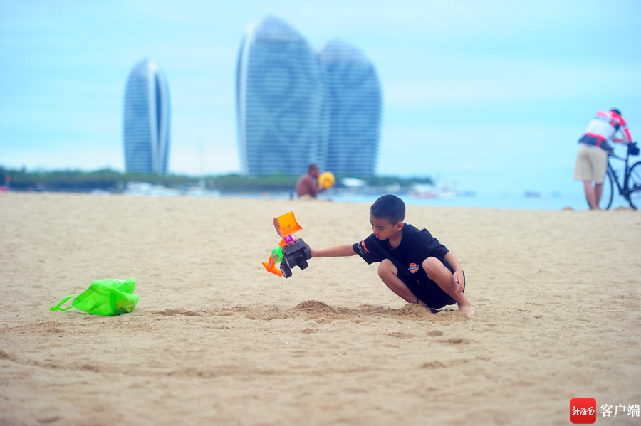 5月3日,小朋友在三亞灣玩沙。記者 沙曉峰 攝