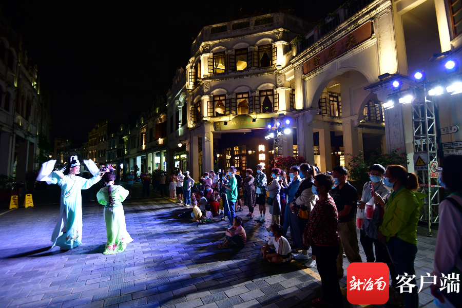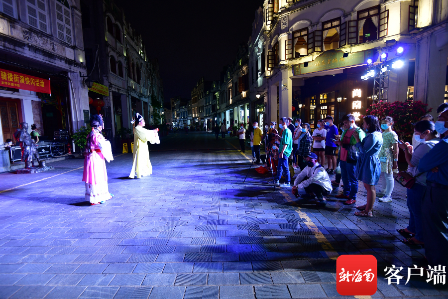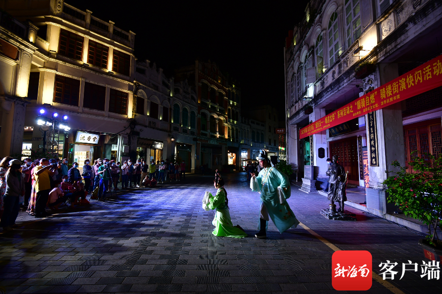 ?新海南客戶端、南海網、南國都市報5月5日消息(記者 陳衛東)5月4日晚,海口騎樓老街上演瓊劇精品劇目,吸引不少市民和游客駐足欣賞。人們在游覽老海口風光的同時,還近距離體驗到海口的文化魅力。