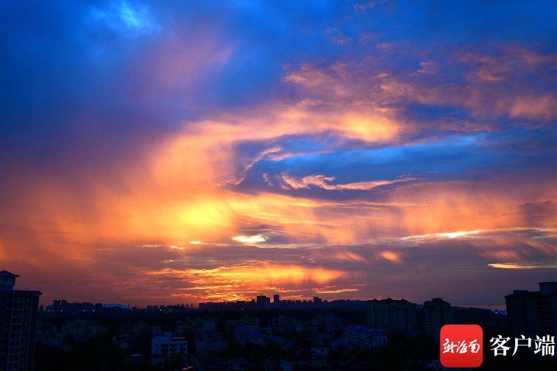 新海南客戶端、南海網、南國都市報5月11日消息 (記者 陳衛東)11日傍晚,一陣小雨過后,海口天空出現火燒云景觀。