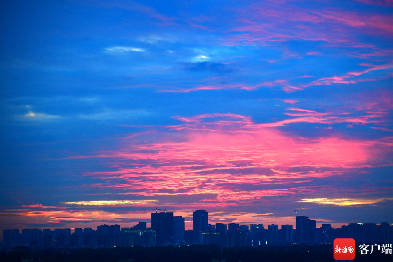 原創組圖 | 11日傍晚 ??诔霈F火燒云景觀