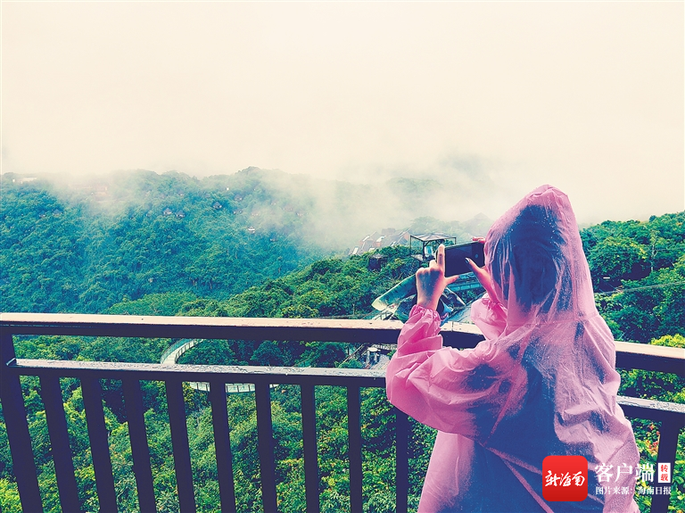 亞龍灣熱帶天堂森林公園呈現云霧繚繞、如夢如幻的景象,吸引景區游客駐足觀看,拍照留影。海南日報記者 武威 攝