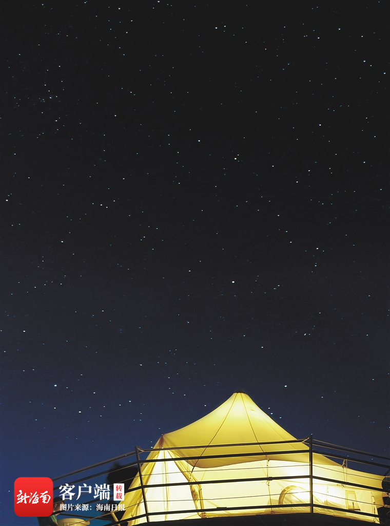 游客在蜈支洲島旅游區露營,欣賞星空美景。(蜈支洲島旅游區供圖)