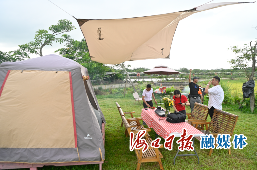 5月21日,海口潭豐洋省級濕地公園里,游人搭起帳篷,開啟野營之旅。海口日報記者 石中華 攝