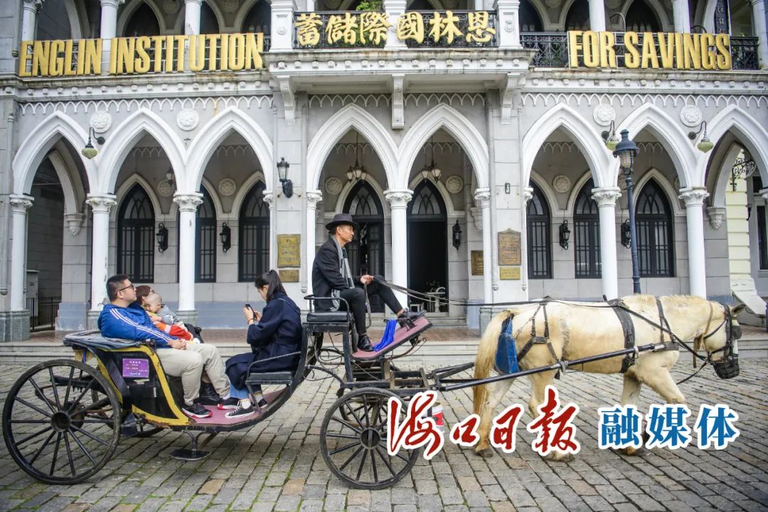 游客在觀瀾湖馮小剛電影公社乘坐馬車游覽園區。海口日報記者 陳長宇 攝