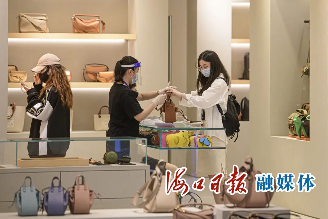 ?海口日月廣場免稅店內,消費者在選購手提包。海口日報記者 陳長宇 攝