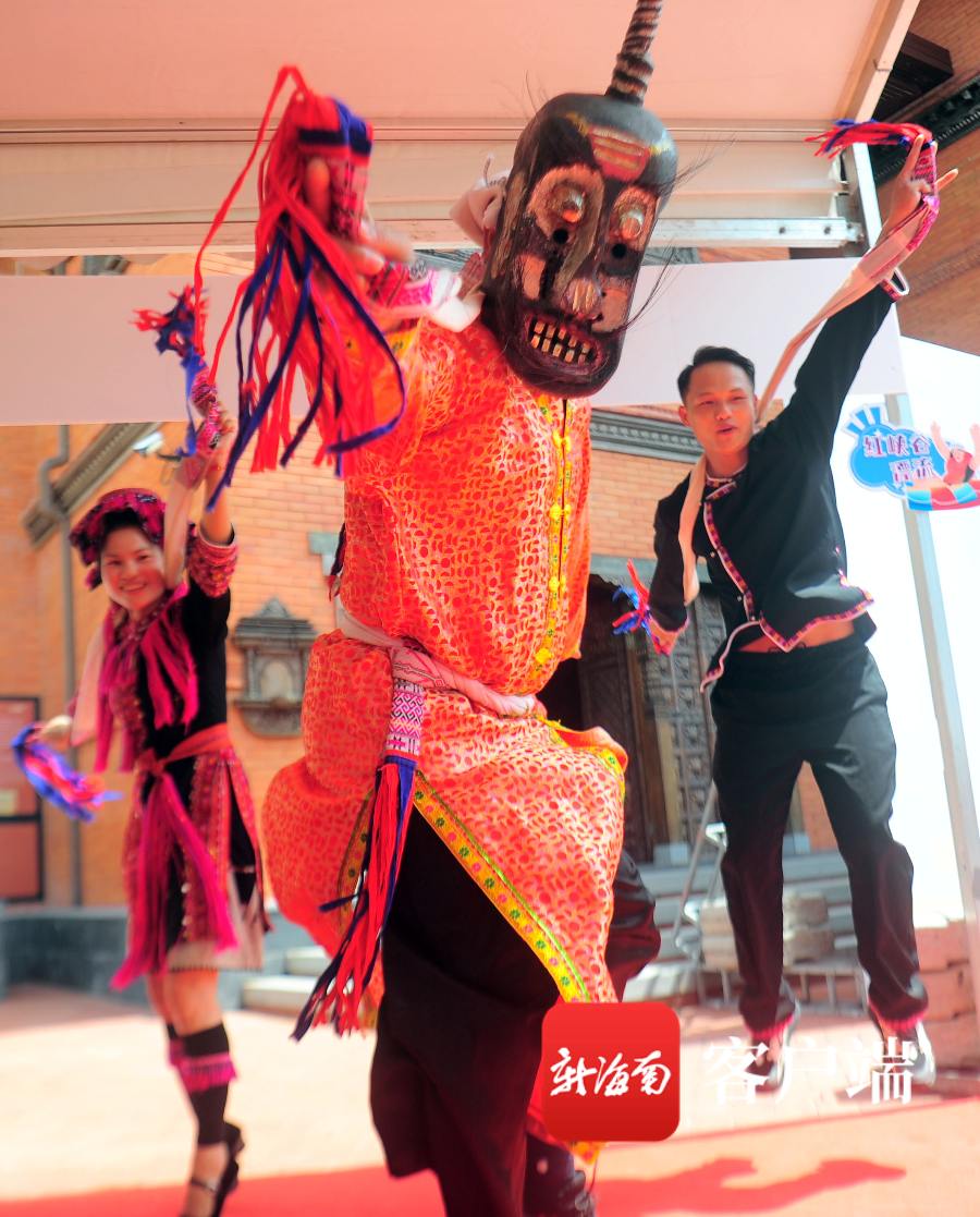 6月11日,2022年“文化和自然遺產日”海南省非遺宣傳展示系列活動南部片區會場,海南苗族盤皇舞展示。記者沙曉峰攝
