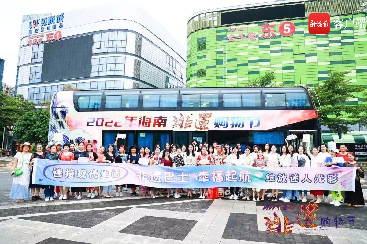 晚上活動有亮點,白天巡游更是精彩。6月11日上午,“非遺巴士”在日月廣場正式發車,這是今年非遺購物節的一大特色。巡游巴士進行了整體包裝和創意設計,車體設計融入海南非遺元素,體現海南非遺特色。同時,巴士司機及工作人員身著黎錦服飾,帶領市民及游客開啟一段與眾不同的非遺之旅,成為海南“非遺購物節”期間一道靚麗的移動風景線。
