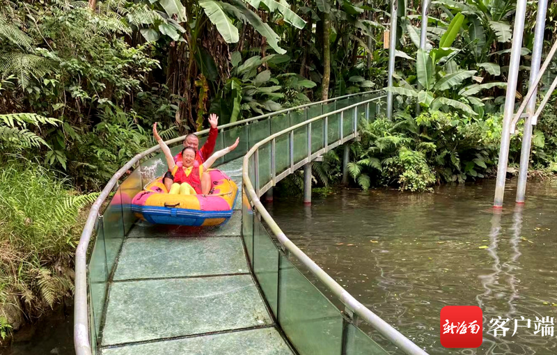 2022年海南紅色旅游采風(fēng)團(tuán)在瓊中百花嶺體驗(yàn)雨林速滑。 記者陳望 攝