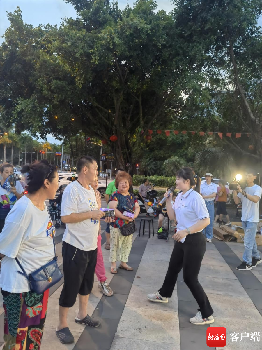 當天,在瓊海市嘉積鎮伊比亞廣場,上演了海口地標打卡拍照、歌舞表演、互動游戲、抽獎送禮等精彩活動,實惠的禮品、豐富的旅游線路和旅游資源,吸引了眾多市民游客參與,人們在趣味橫生的解說中沉浸式“云游”海口。
