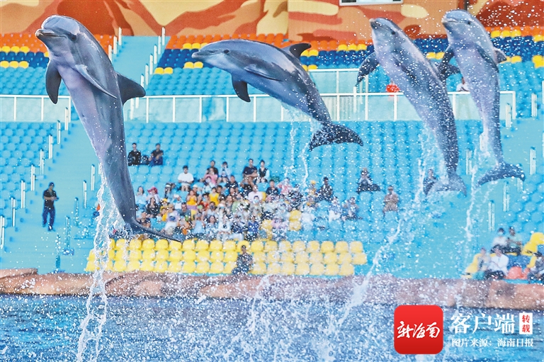 ?7月5日,30多名專家學者在海南富力海洋歡樂世界觀看海豚表演。見習記者 王程龍 攝