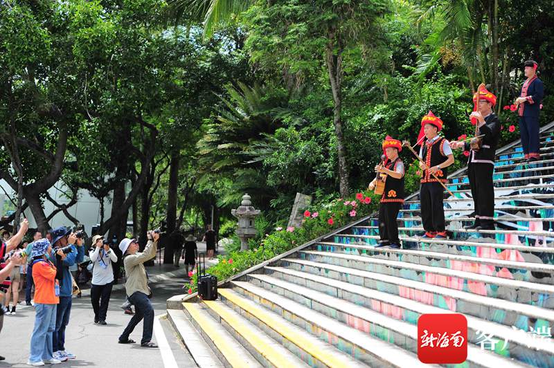 “太棒了!用簡單的竹木器,竟能傳遞出這么清揚的曲調。”從精美的黎錦苗繡、悠揚悅耳的民族樂器,到熱情洋溢的黎族歌曲,不少游客沉浸在這場高品質的視聽盛宴中,更覺得這趟“免費”的登山之旅收獲滿滿。