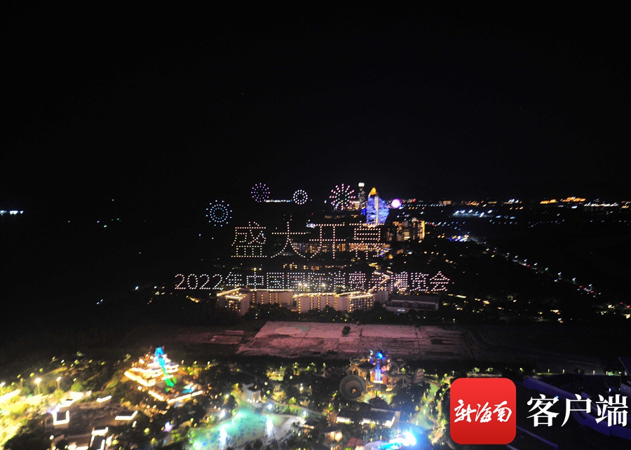 當(dāng)晚20時(shí),1000架無人機(jī)緩緩爬升,如螢火蟲在空中漫天飛舞,星星點(diǎn)點(diǎn)拼湊出首個(gè)表演畫面——2022年中國國際消費(fèi)品博覽會(huì)盛大開幕。