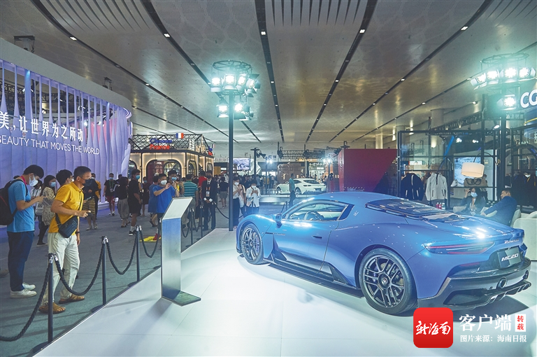 在消博會5號館,觀眾參觀瑪莎拉蒂品牌跑車。海南日報記者 封爍 攝