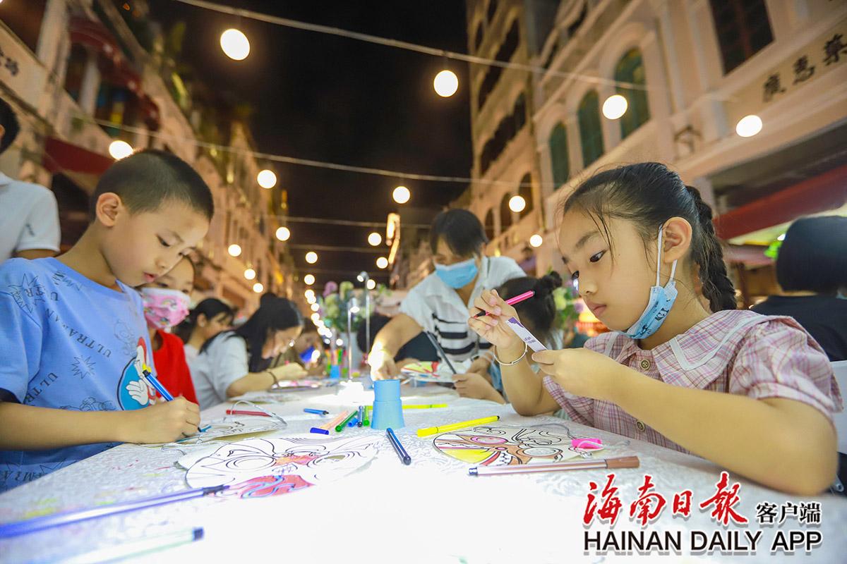 7月26日,“非”凡消博“遺”世獨立 讓世界看見海南美非遺特色展在海口龍華區(qū)騎樓老街舉行,小朋友們在制作瓊劇臉譜。海南日報見習記者 王程龍 攝