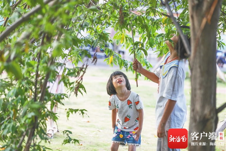 小朋友在海口騎樓老街中山橫路街心公園的樹下玩耍。海南日報記者 李天平 攝
