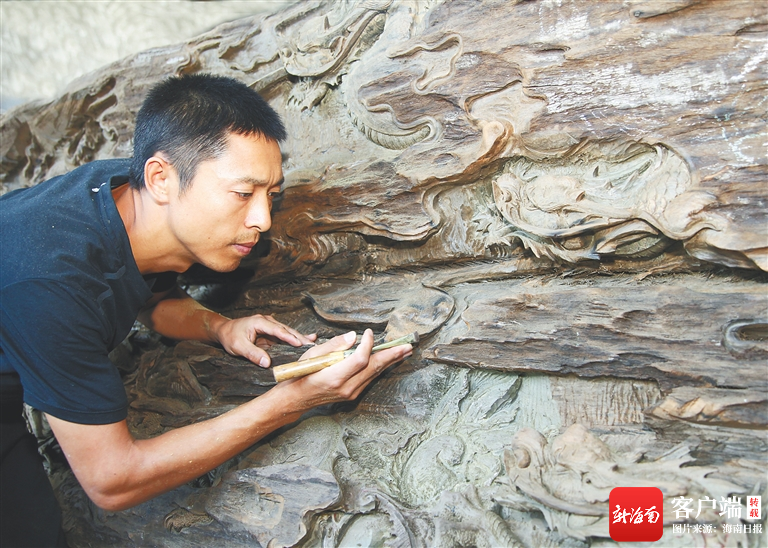 這些年來,為了傳播、振興傳統工藝,吳孔德走進高校任教,同時招收徒弟,傳授技藝。他陸續收徒60多位,其中有12位成為省級工藝大師,這中間又有6位南海工匠。用海南的木料也好,雕刻海南的文化主題也好,他希望具有海南特色的木雕可以為更多人所知。