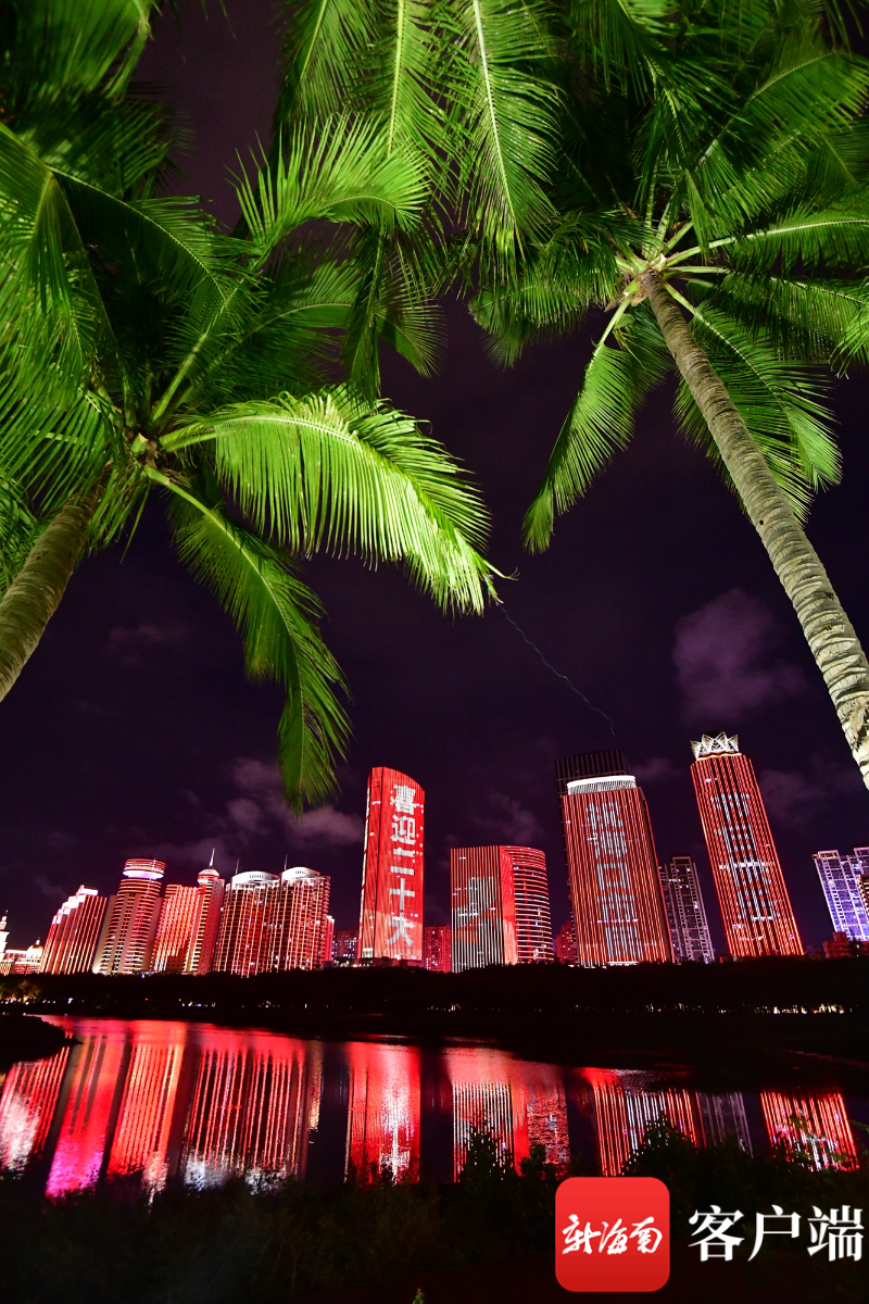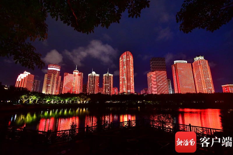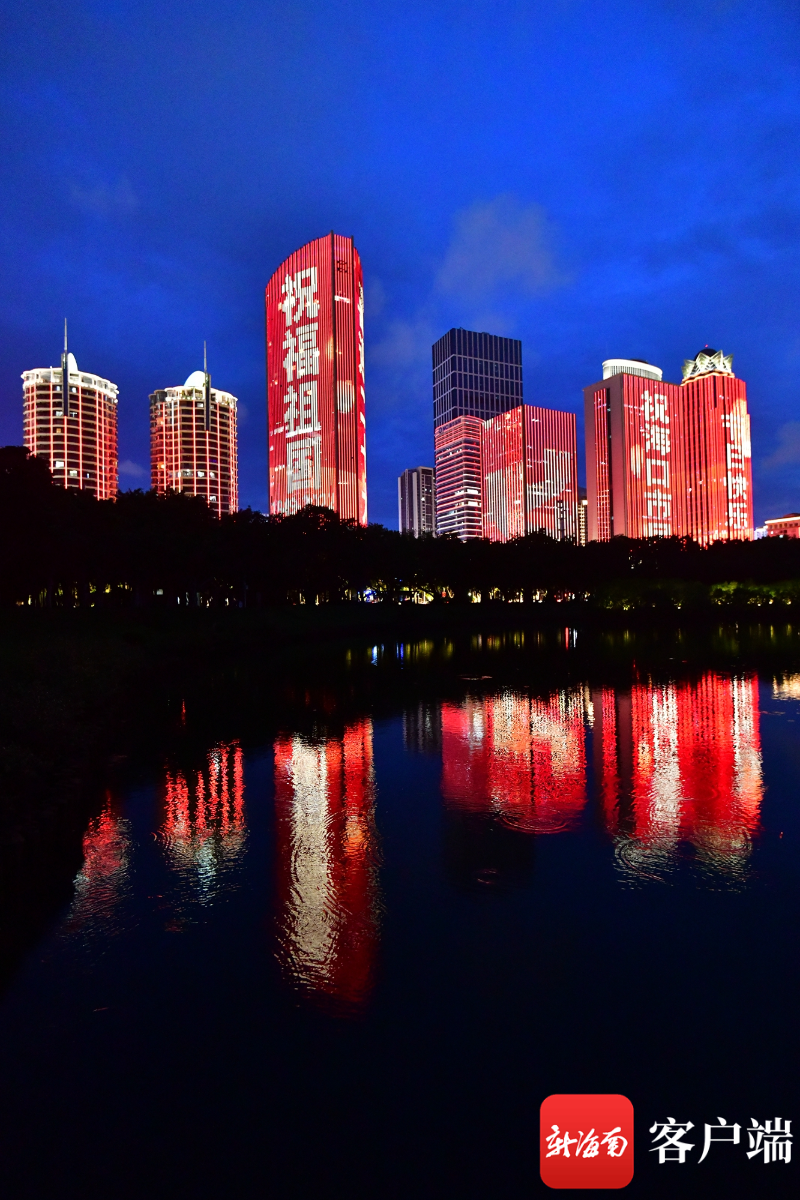 原創(chuàng)組圖丨海口上演國(guó)慶主題燈光秀