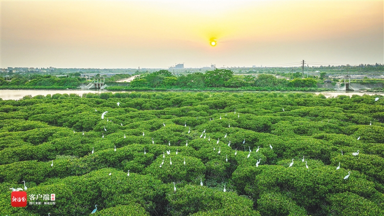 綠波碧水,白鷺翩躚。站在海口市東寨港岸邊遠(yuǎn)眺,目之所及,成片青綠。