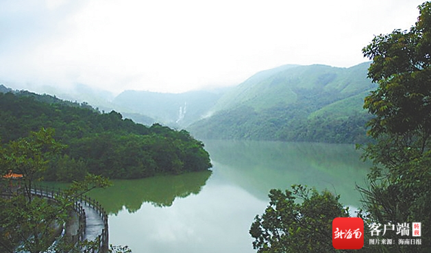 這里群山環(huán)抱,湖面如仙人洗面之鏡,被五指山、鸚哥嶺、霸王嶺、黎母山等山嶺環(huán)繞,自然資源十分豐富。放眼望去,還有瀑布飛濺直下,落入深潭,長(zhǎng)流不止。