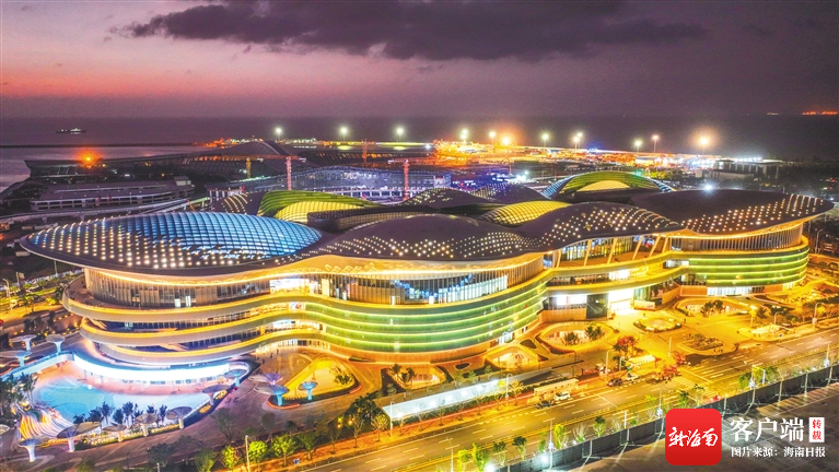 10月26日,海口國際免稅城夜景,燈光璀璨。