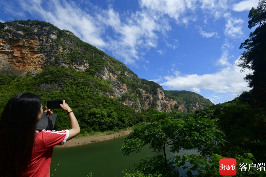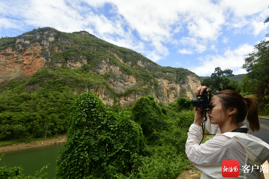 2022年“走進國家公園 探訪熱帶雨林”主題采訪團的記者在昌江黎族自治縣王下鄉拍攝“十里畫廊”。記者 陳衛東攝
