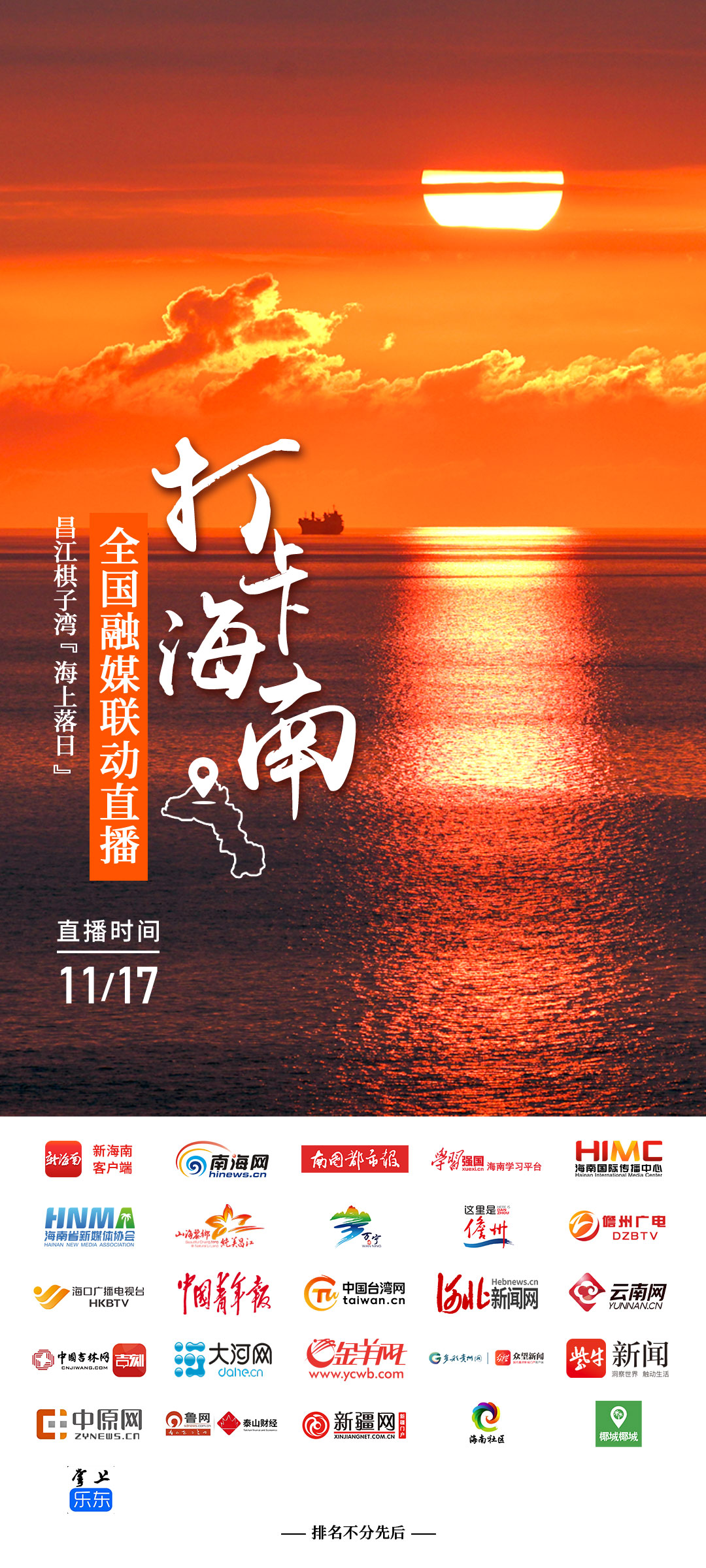 20多家全國融媒將聯動直播,給全國網友呈現山海黎鄉的旖旎風光。除了海南棋子灣開元度假村直播點位外,棋子灣大角、中角等景點以及海南萬國棋子灣海灘大酒店等點位,都能從不同角度欣賞“醉”美海上落日和棋子灣綿長海岸帶的壯闊景觀。