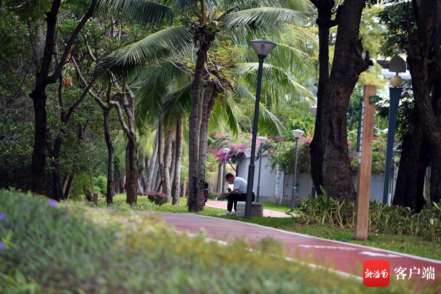 12月15日,市民在三亞臨春河?xùn)|側(cè)綠道休息。記者 沙曉峰 攝