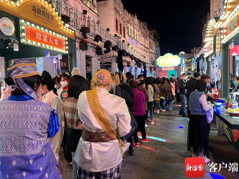 活動期間,20家知名海南雞飯店依次排開現場烹飪美食,共同打造了一場融合南洋文化、瓊菜文化、市集體驗等為一體的美食文化盛宴。不少市民游客慕名而來,紛紛加入“沉浸式風味市集”現場。