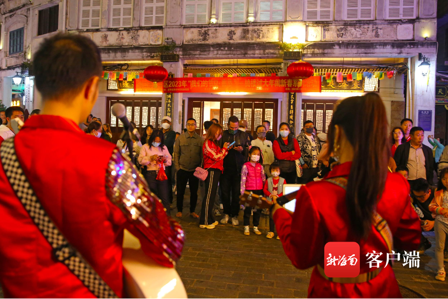 精彩的瓊劇表演、吸引小朋友的糖畫、鬧春快閃表演、龍獅賀春、網紅樂隊、海島特色風情、雜技等多種多樣的迎春表演,讓海口騎樓在春節期間人氣滿滿,游人如織。