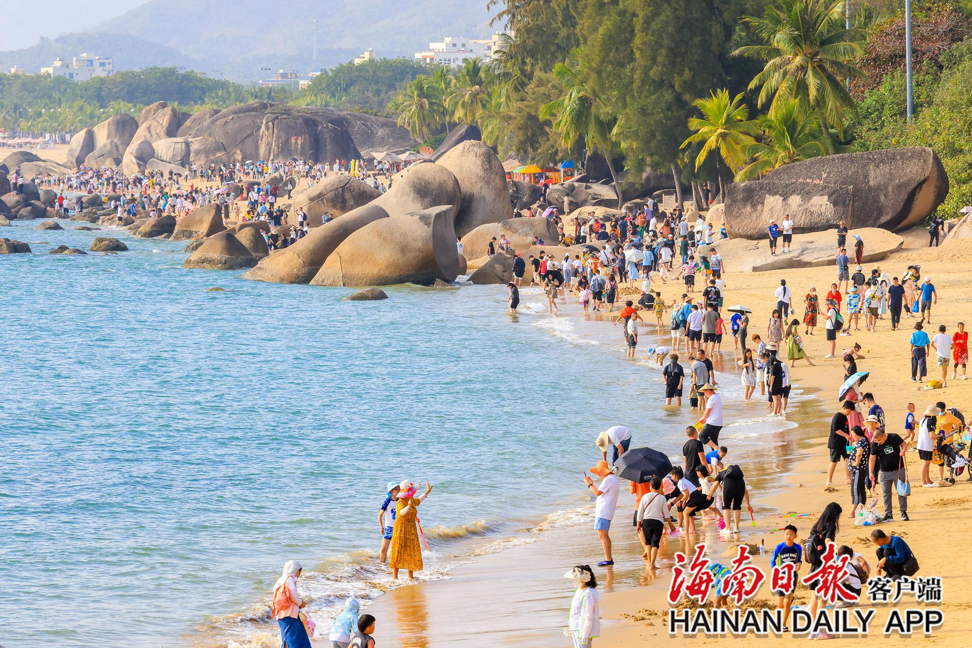 春節期間,大量游客在三亞天涯海角景區游覽。
