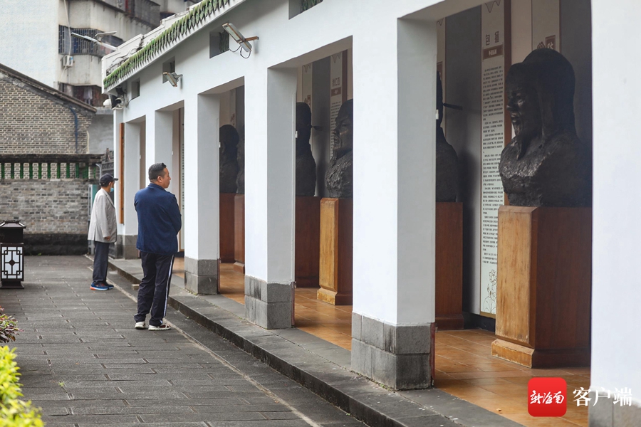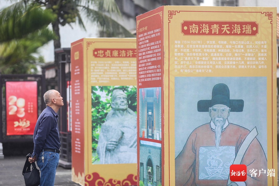 市民游客打卡瓊山區(qū)“一里三賢”及“瓊山名人摘錄”文化展。記者 姚皓 攝