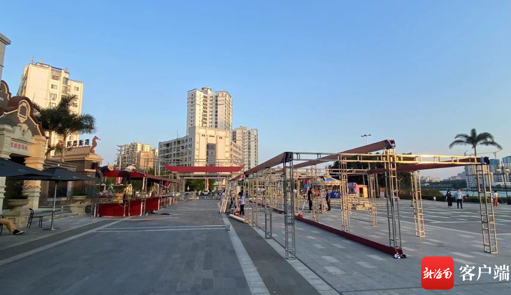 記者在海口東坡老碼頭看到,工作人員正在廣場忙著搭建棚子。屆時,30家國內特色小吃以及海南地標名菜名小吃齊聚海口,經典美食將撩動大家的味蕾。此外,10家文創集市將集中展銷東坡桂酒、荔枝酒、山欄酒等東坡主題產品。