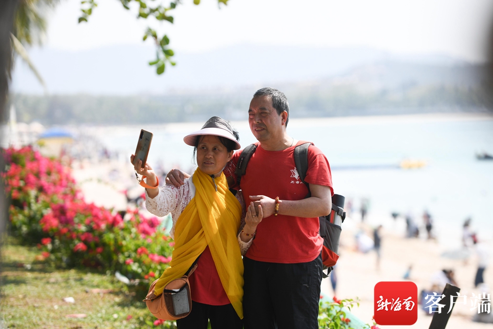 2月26日,游客在三亞大東海景區(qū)拍照打卡。記者沙曉峰攝