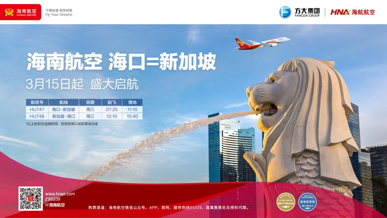 新海南客戶端、南海網、南國都市報3月1日消息(記者 丁文文 通訊員 楊映娟)3月1日,記者從海南航空獲悉,為滿足廣大旅客出行需求,海南航空計劃于3月15日起恢復???新加坡直飛國際航線。該航線的通航運營,將為兩地搭建起經貿、旅游和文化交流的橋梁。