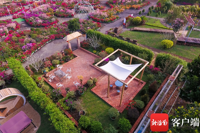 看花海、走花道、聞花香、聽花吧、購花物、宿花屋,眼下,海口三角梅共享農莊正在上演一場為期三個月的“花園村莊 幸福生活”花展主題田園風光秀。