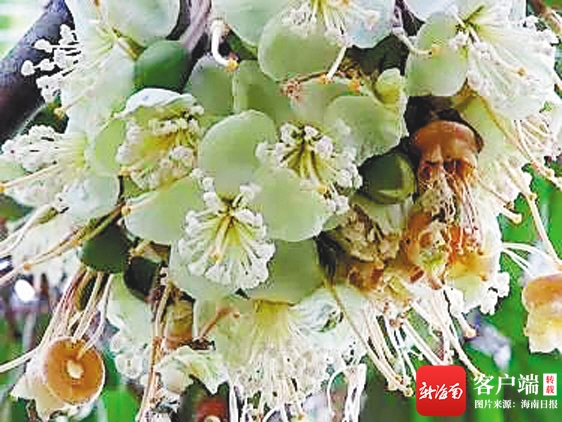 中國熱帶農業科學院熱帶作物品種資源研究所助理研究員洪繼旺介紹,荔枝的花穗是復總狀圓錐花序,花軸上生有側穗、支穗和小穗,每個小穗由三朵小花組成。荔枝花容貌普通,甚至沒有花瓣,只有綠豆般大小的花蕾,淡青中吐白,凋謝時轉為褐色。別看荔枝花貌不驚人,但卻有“荔枝花開兆豐年”的俗語,因為荔枝樹的盛花期主要依靠蜜蜂授粉讓荔枝增產,實現豐收。