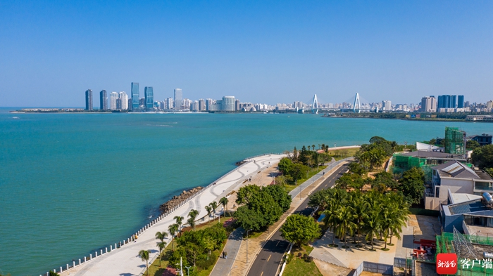 俯瞰海口灣暢通工程萬綠園段濱水空間。記者 劉洋攝(資料圖)