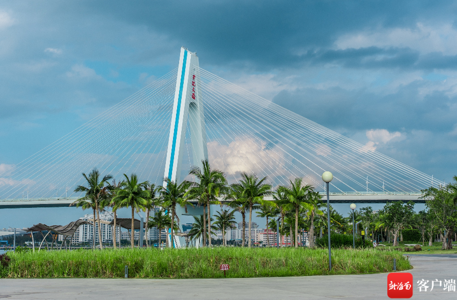 海口灣,椰樹與世紀大橋相互映襯,別有一番椰城韻味。新海南客戶端記者 李昊 攝
