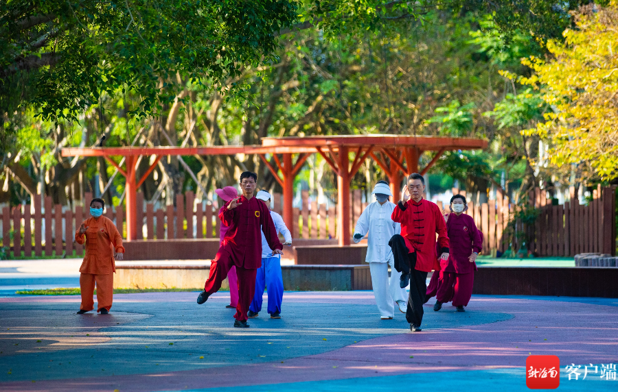 人們在萬綠園晨練。新海南客戶端記者 李昊 攝