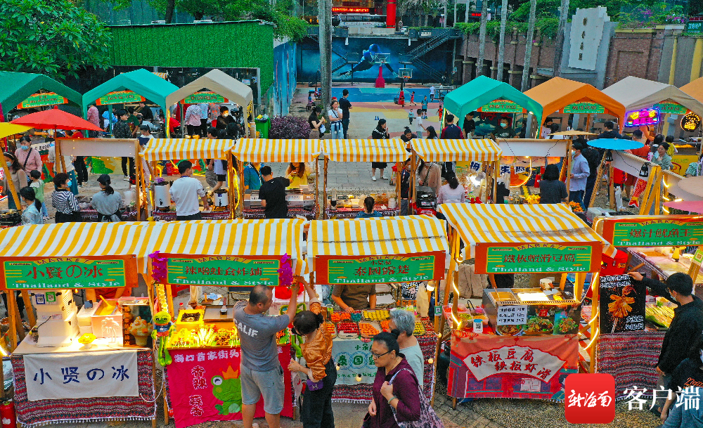 4月9日晚,位于??谑协偵絽^南海大道的明光商業廣場星州夜市火熱開街,為市民游客提供又一個特色休閑娛樂新去處。據悉,瓊山區星州夜市以東南亞元素為主題,匯聚120家特色美食,10余家文創工藝品攤位,打造可容納千人狂歡的戶外大型互動空間,讓市民群眾在逛夜市、享美食的同時,能領略到不一樣的東南亞風情,感受非遺文化獨特的魅力。
