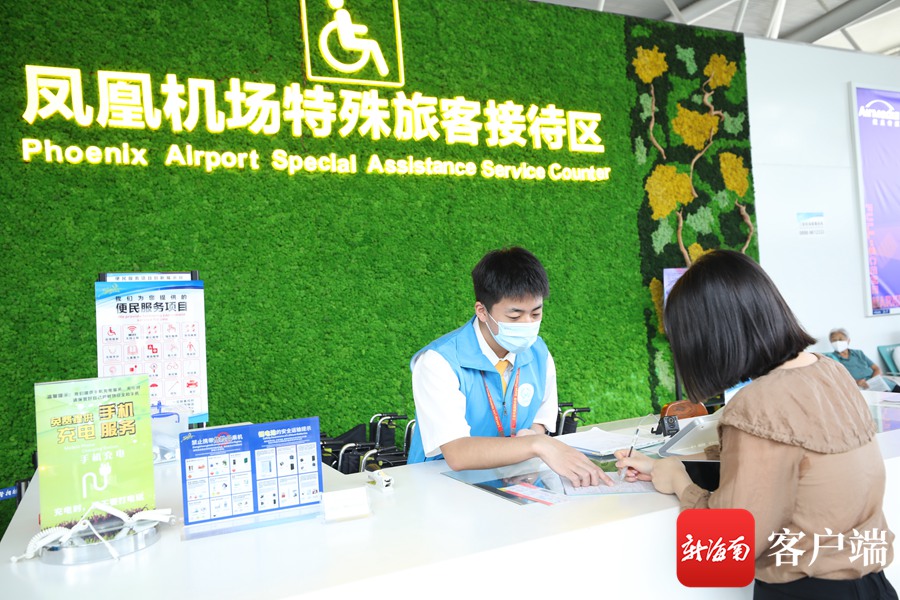 機場工作人員為旅客提供服務。三亞鳳凰機場供圖