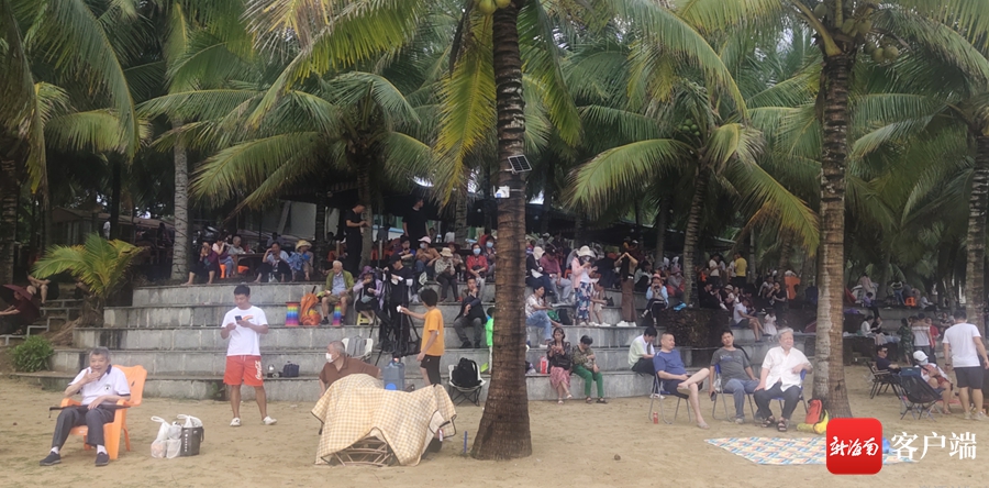 10日下午,一陣小雨過后,龍樓鎮(zhèn)的天氣特別涼爽,越來越多的游客涌向淇水灣海灘,這里的10多個特色小吃攤人擠人。為了看火箭發(fā)射,不少人是拖家?guī)Э诙鴣怼@嘶〒舸蚓奘克疄趁谰叭绠嫛S械挠慰驮诖岛oL、有的背對美景自拍、有的自帶小桌子沖茶喝,有的甚至連寵物狗也帶來了。來自江蘇的李先生69歲了,他告訴記者,“五一”假期,他和老伴從老家來文昌旅游,得知有火箭發(fā)射,干脆在龍樓鎮(zhèn)上的賓館住了將近10天,為的是能觀看一次火箭發(fā)射,不給人生留遺憾。