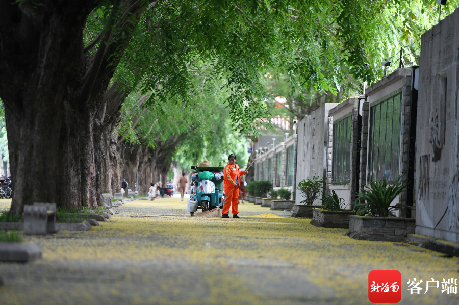 新海南客戶端、南海網(wǎng)、南國都市報(bào)5月15日消息(記者 沙曉峰)五月的三亞街頭,正值紫檀花開,微風(fēng)輕拂,金黃色的小花落滿地,遠(yuǎn)遠(yuǎn)望去好像給大地鋪上一層黃燦燦的地毯。