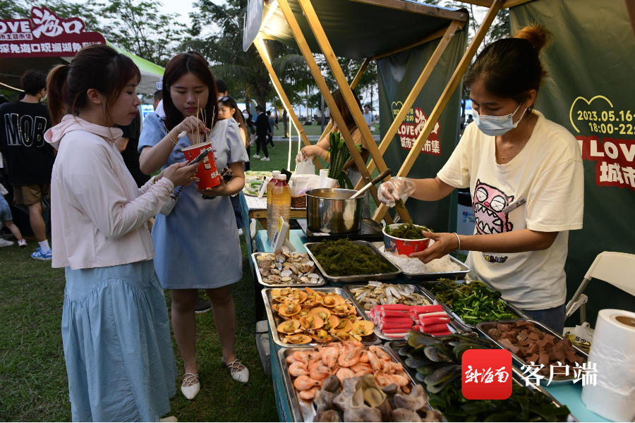 “有得逛、有得買、有得吃,有得樂”主打一站式吃喝玩樂,為期三天的I LOVE海口城市主題市集當晚一開市便人氣十足,這里匯聚了海口頭部旅行社產(chǎn)品展銷區(qū)、“這一口 很海口”生活方式展示區(qū)、海口免稅互動區(qū)、“海口+6”市縣旅游產(chǎn)品及商品展銷區(qū)、mini海南雞飯市集五大區(qū)域,集中展示海口、澄邁、文昌、定安、瓊海、屯昌、五指山7市縣旅游產(chǎn)品、特色美食等旅游文化資源。