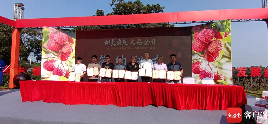 當天上午,現場還舉行火山荔枝銷售簽約儀式,北京胖子果業公司、海南陵水豐潤農業發展有限公司、南京吉畝果業有限公司、海南滴滴沃家生態農業科技發展有限公司等企業和當地果農進行簽約,達成意向訂單量近1200萬斤。