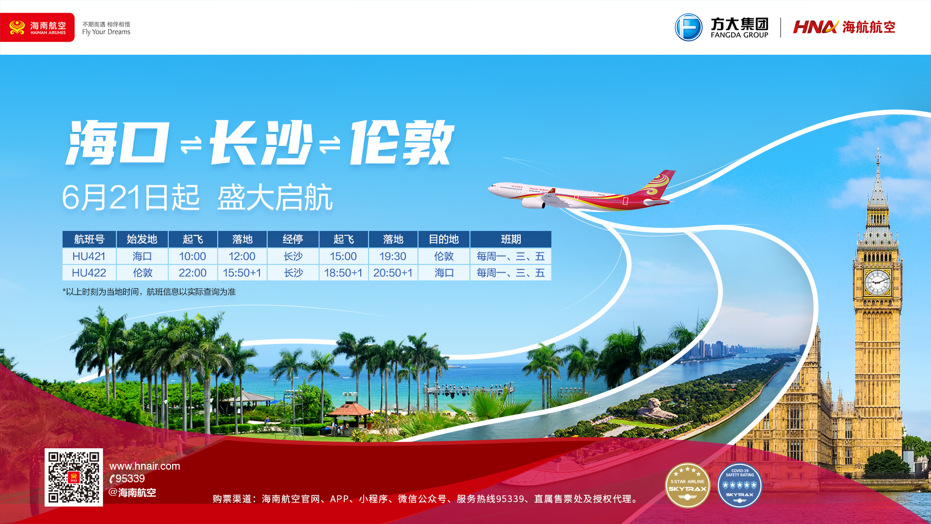 海口?長沙?倫敦航線將于6月21日開通