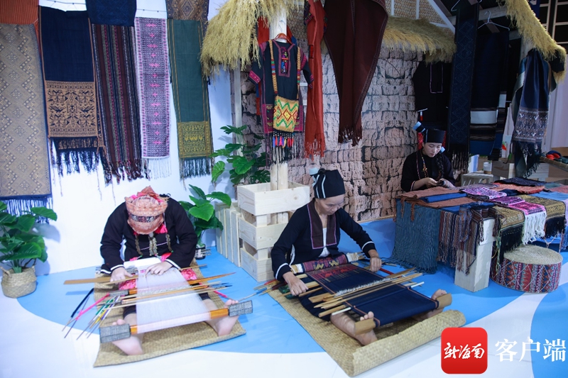 海南黎錦亮相第37屆香港國際旅游展海南展館。海南省旅文廳供圖