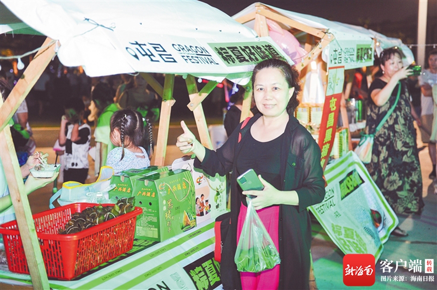 海口市民在活動現場購買屯昌黑豬肉粽并點贊。圖片由活動主辦方提供