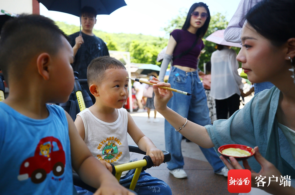 ?6月22日,市民和游客在三亞南山文化旅游區(qū)免費參加畫額抹雄黃活動,體驗端午節(jié)的傳統(tǒng)習(xí)俗。通訊員 陳文武 攝